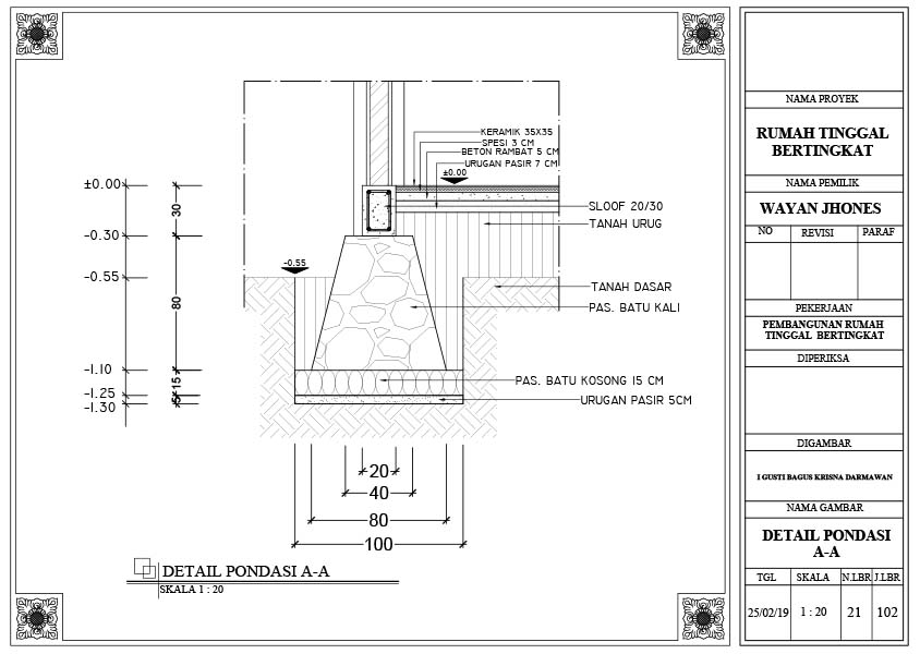 Pada pertemuan 5 sampai 6 peserta akan diajarkan teknik membuat denah pondasi, detail pondasi, denah rencana kusen, detail kusen dan detail lantai.